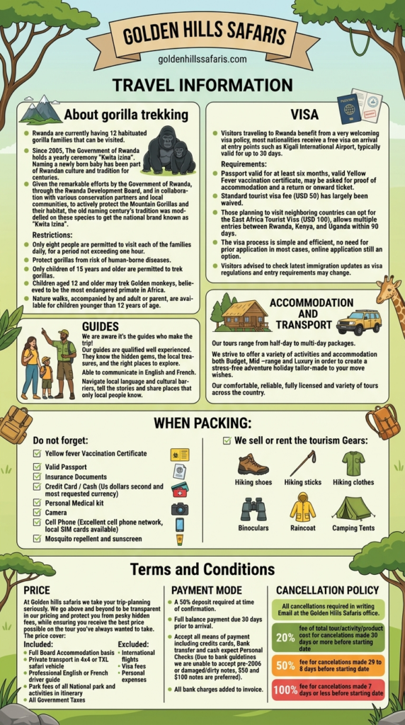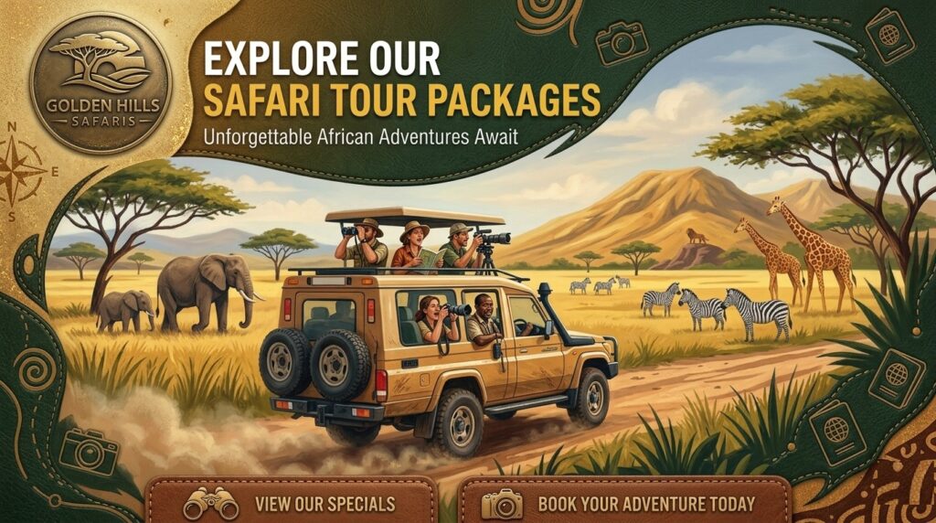 At Golden Hills Safaris, we design unforgettable travel experiences across East and Central Africa, tailored to your interests, budget, and travel style. Our packages combine wildlife safaris, cultural encounters, and adventure activities, taking you to iconic destinations such as Serengeti National Park, Maasai Mara National Reserve, and Bwindi Impenetrable National Park.
